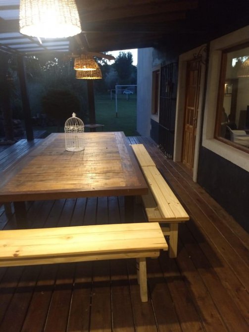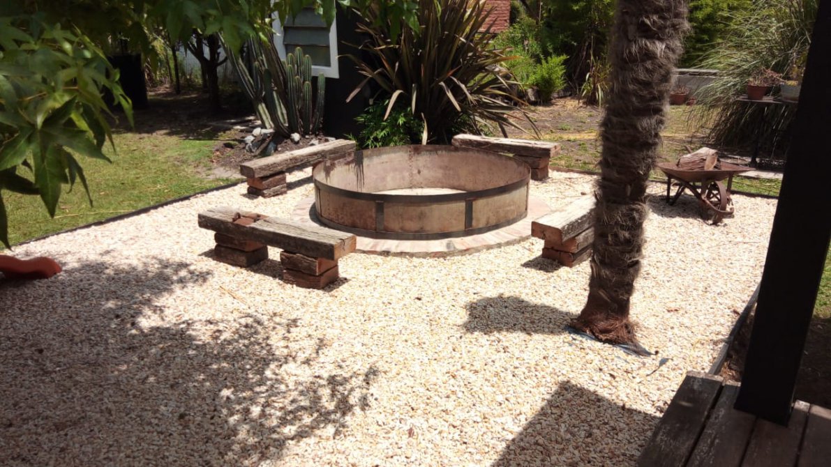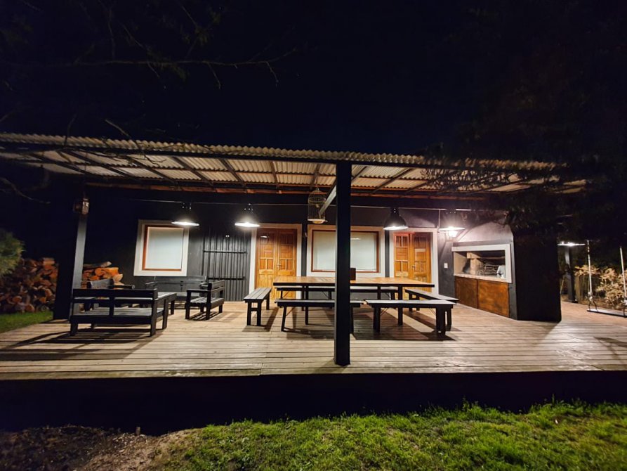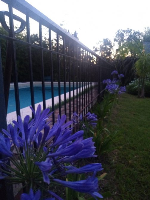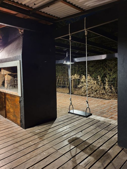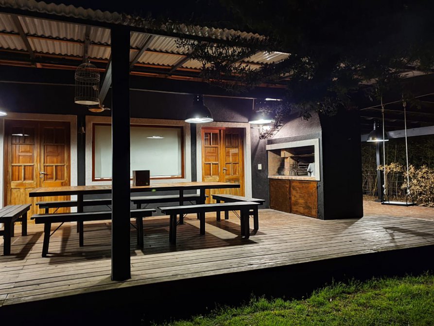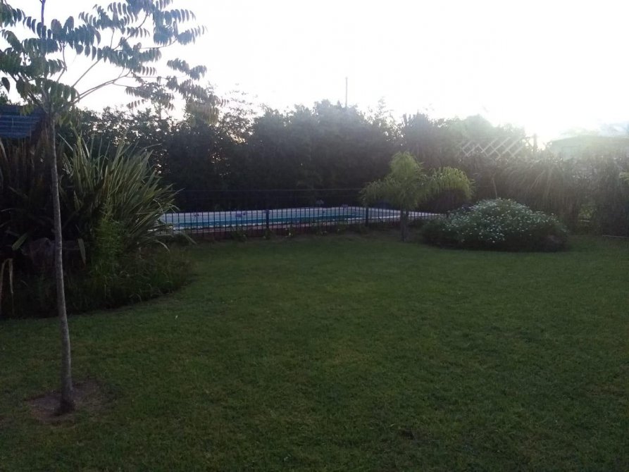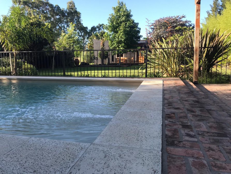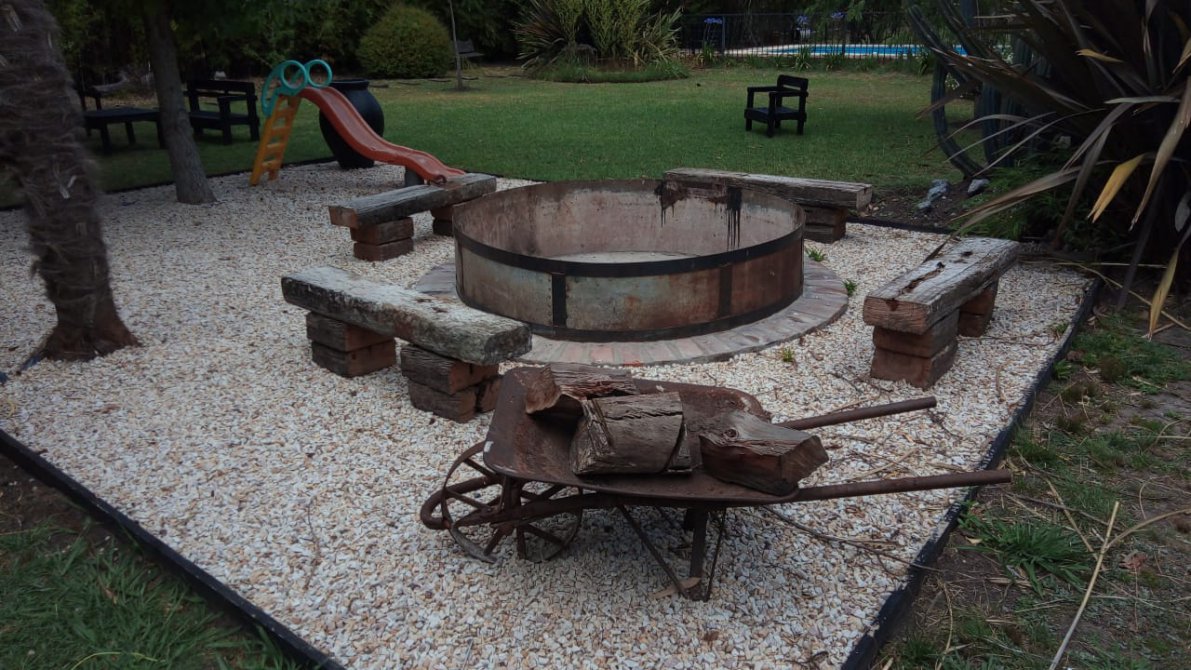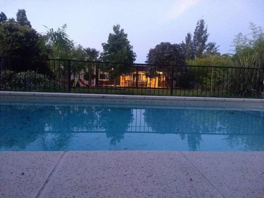 AL FINAL DEL LOTE, ESTA LA PISCINA, RODEADA DE REJAS, CON SOLARIUM, BAÑO, Y UN HERMOSO ASADOR CRIOLLO, RODEADO DE BANCOS RUSTICOS Y PISO DE PIEDRA BLANCA.