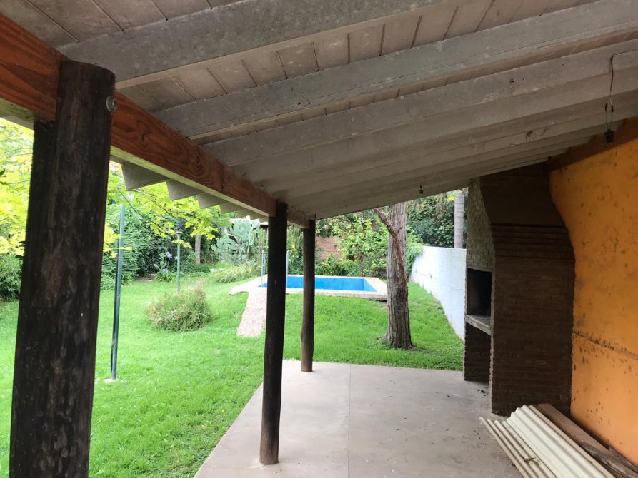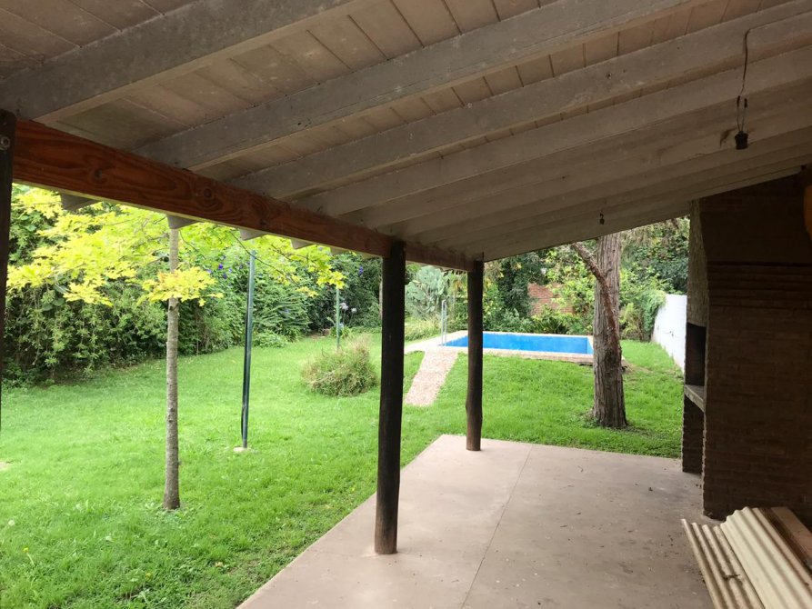 EN LA PARTE TRASERA, EN SU HERMOSO PARQUE ARBOLADO, CUENTA CON UNA PARRILLA TECHADA, GARAGE SEMI CUBIERTO Y UNA PILETA DE 6 x 4 MTS.