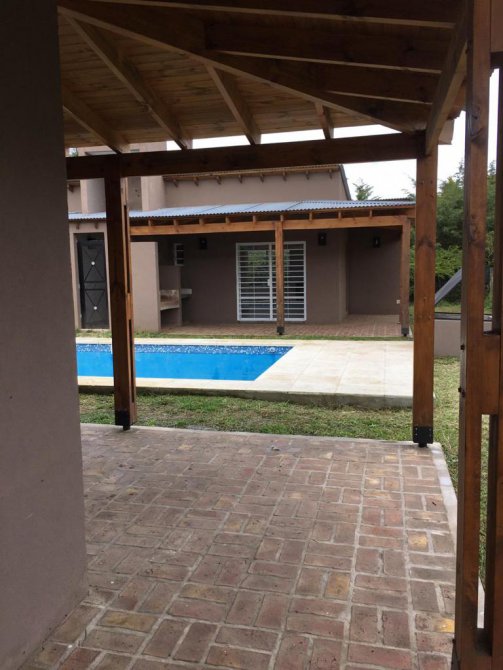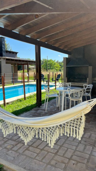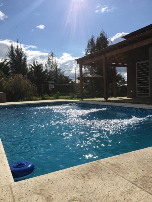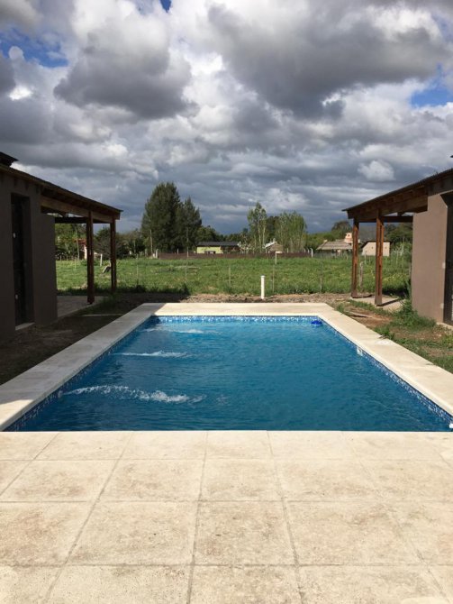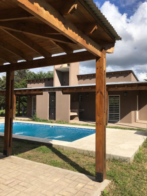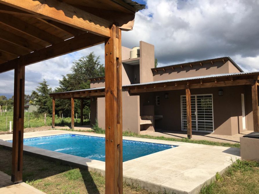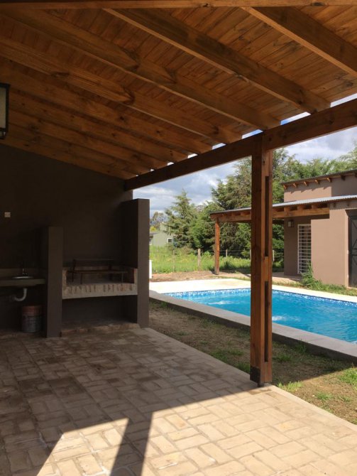 Cada casa está compuesta por cocina comedor equipada con cocina escorial candor, con salida a la galería a través de ventana balcón, amplio living con estufa tiro balanceado Volcán 5700 kcal, dormitorio y baño completo, todos los ambientes con ventiladores de techo con luz led, grifería FV en baños y Piazza en cocinas, en exteriores amplia galería en L con parrilla y mesada con bacha, todas las galerías con vista a la pileta de 6x3 con acceso por escalera en ambos extremos e iluminación led, bomba y filtro marca Vulcano, bomba sumergible marca Motorarg, termotanques eléctricos marca Señorial de 95 litros, cañerías de gas y agua termofusión, protección eléctrica en cada cabaña con regulador de voltaje, revestimiento tarquini, techos de madera, aberturas de aluminio, pisos cerámicos, rejas en todas las aberturas, planos aprobados, lote de 20x30 con escritura, impuestos al día.