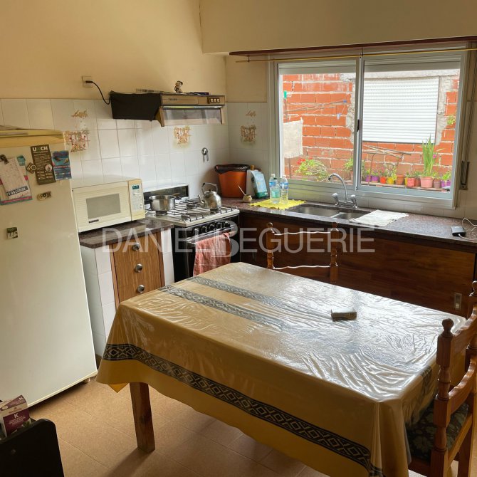 Pasando el living, está su cocina comedor, con salida al patio. La misma cuenta con mesada de marmol, termotanque en parted, espacios generosos y buena luminocidad.