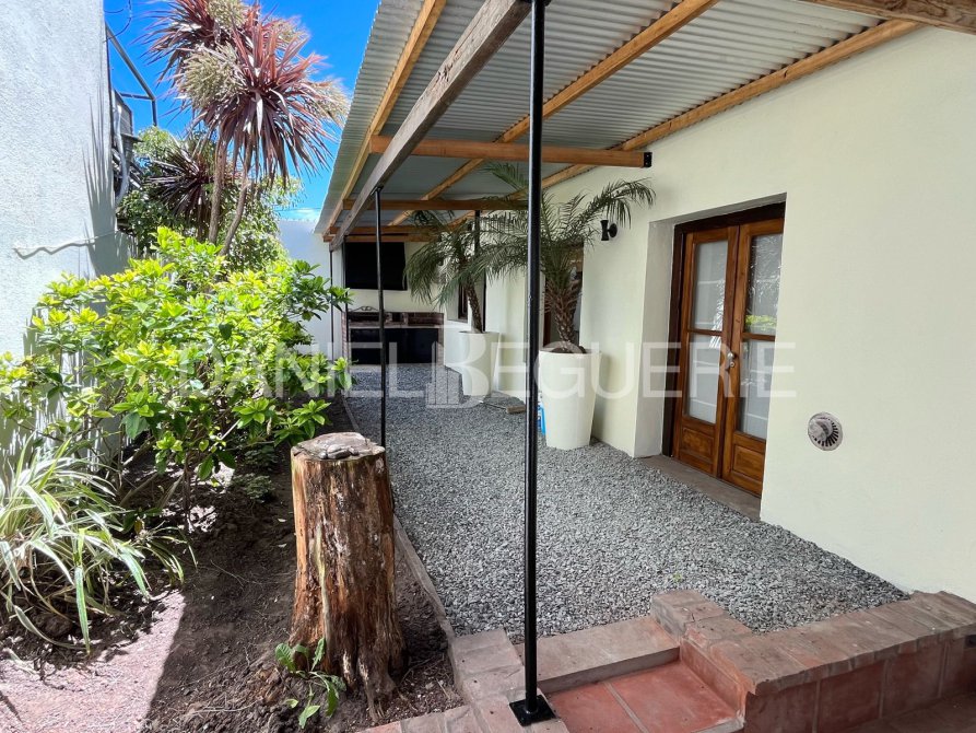Se ingresa, por su garage semi cubierto, donde se encuentra la galeria que cubre todo el largo de la propiedad. Cuenta tambien con una parrilla, que comunica con la cocina.