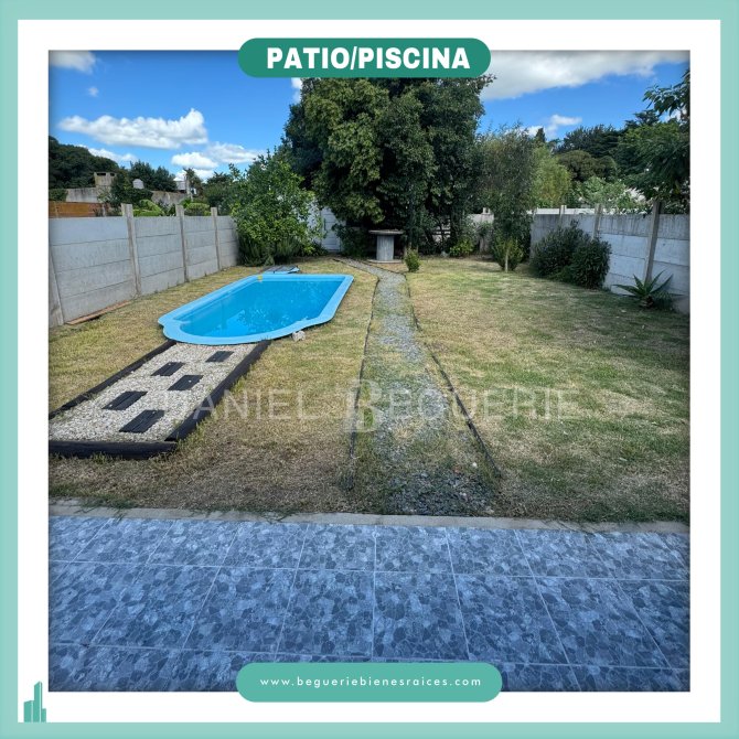 La piscina de material fibra de vidrio, de 3 metros de acho por 5,5 metros de largo, posee todo el sistema de filtrado y bomba sumergible marca Vulcano