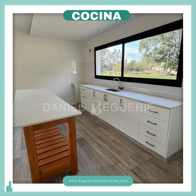 En cuanto a la distribucion de sus 80 m2 cubiertos, posee un amplio ambiente de cocina living comedor, con una barra desayunadora, y amplias aberturas con salida a la galeria, dos dormitorios, ambos con sus respectivos placares de melamina y baño completo.