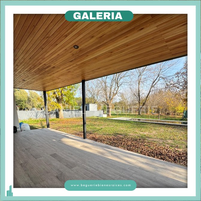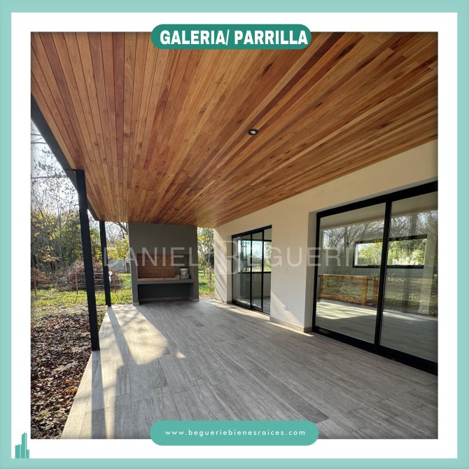 En la galeria de 30m2 (semicubierto) posee una parrilla con ladrillos refractarios y mesada, asimismo el cielorrazo de la galeria es de madera deck.